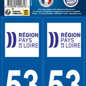 2 adhésifs « Région » prédécoupés, format 4.6×10.3cm (LxH), résistant aux intempéries, rayons UV et lavage haute pression, adhésif haut de gamme 3M, se conformer à l’article 9 de l’arrêté du 9 février 2009 pour la pose de ces adhésifs.