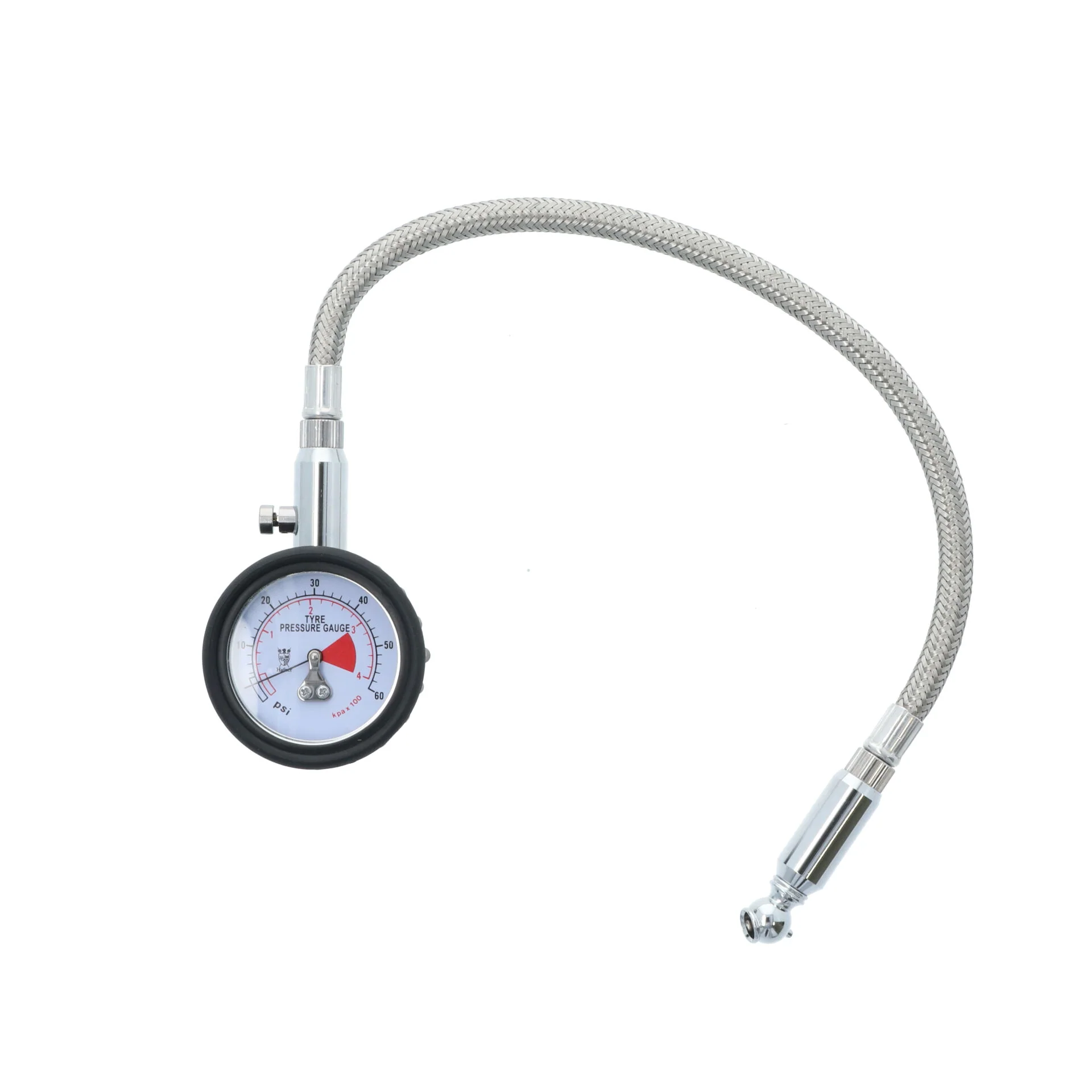 Mesurez avec précision la pression des pneus avec ce manomètre Hafner de Carpoint. Le manomètre des pneus a une plage de mesure de 0,5 à 4 bars et de 0,7 à 58 PSI. Il suffit de placer la buse sur la valve et d’appuyer fermement sur la valve pendant 1 à 2 secondes. Retirez le manomètre de la valve et la pression mesurée du pneu peut être lue. Avec un long tuyau flexible et un boîtier antichoc.