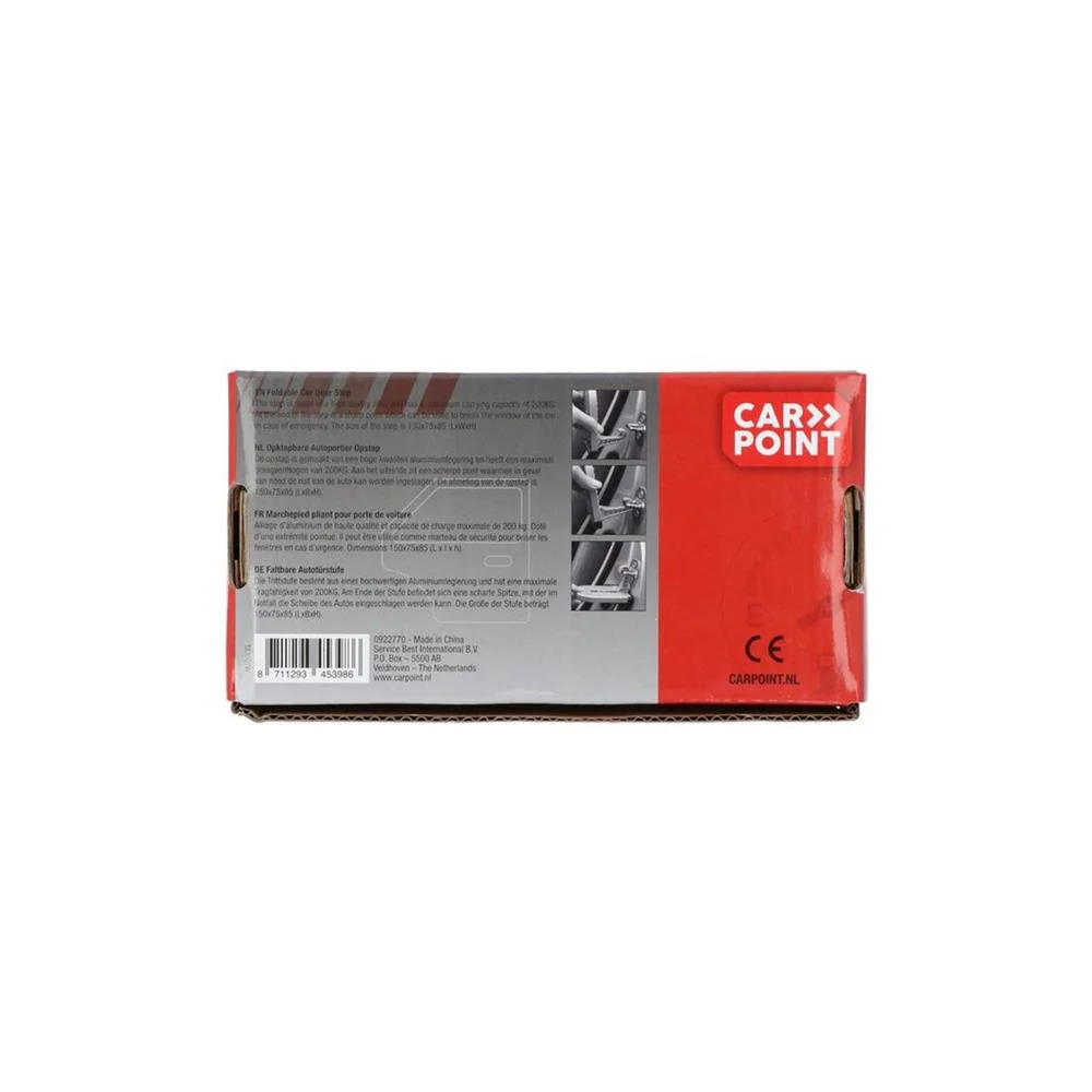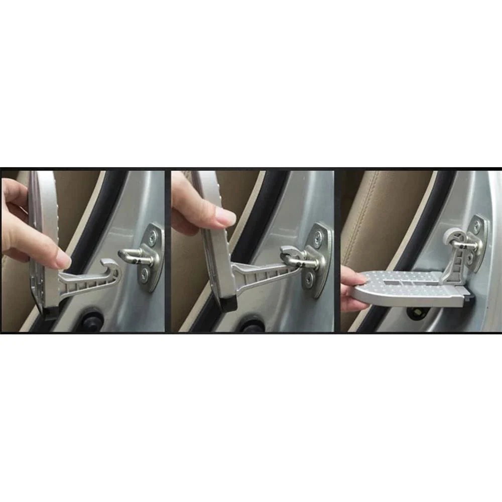 Grâce à ce marchepied pliant, vous avez un accès facile au toit de la voiture. Idéal pour charger votre coffre de toit ou pour installer les vélos sur le porte-vélos. Facile à accrocher dans le loquet de la charnière de porte et à déplier. Capacité de charge maximale de 200 kg. Doté d’une extrémité pointue, il peut être utilisé comme marteau de sécurité pour briser les fenêtres en cas d’urgence.
