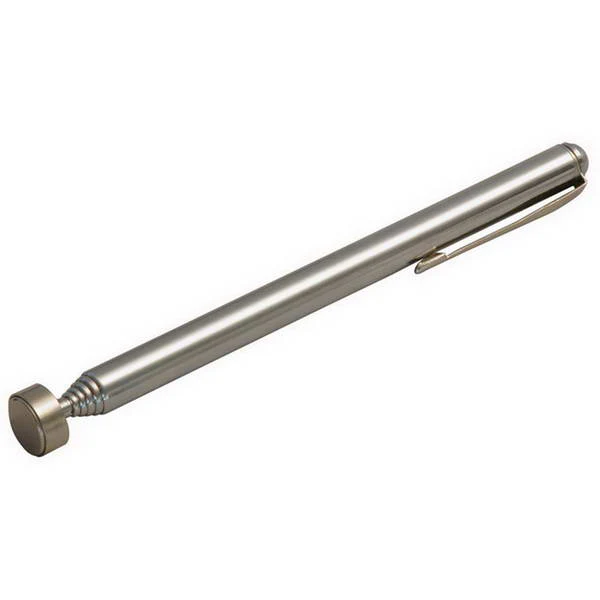 Outil magnétique télescopique Carpoint pour attraper plus facilement de petits objets tels que des boulons, des écrous, des vis ou d’autres petites pièces métalliques dans des endroits difficiles d’accès. Le stylo avec clip pour poche de poitrine pratique a une longueur de 14 cm et peut être allongé jusqu’à 61 cm. L’aimant d’un diamètre de 1 cm a une capacité de levage pouvant atteindre 1,6 kg.