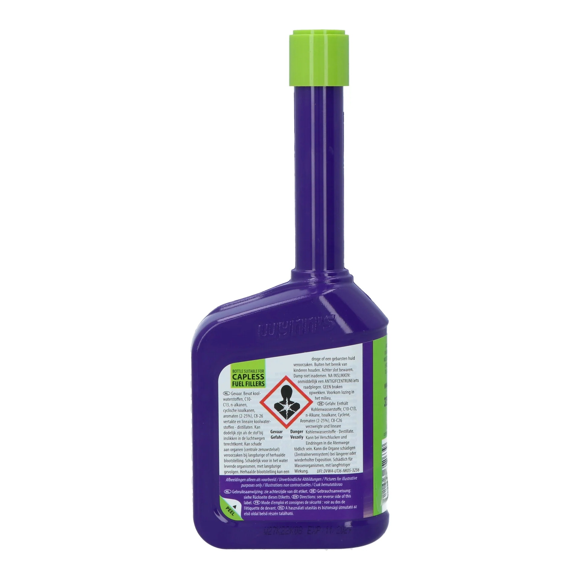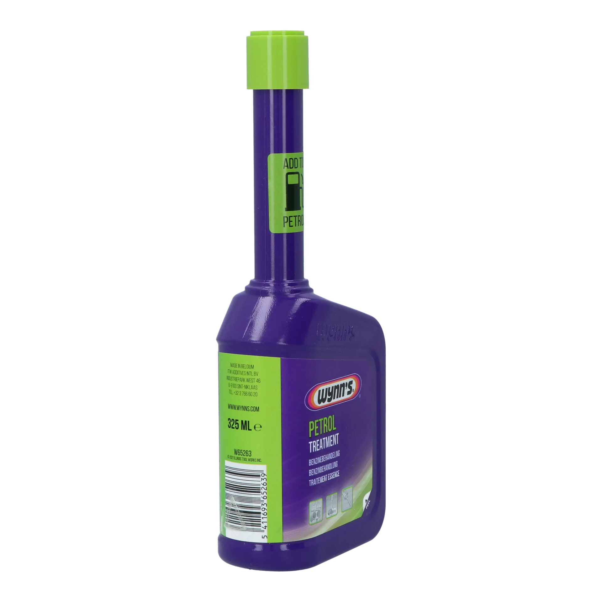 Wynn’s Petrol Treatment est un additif pour les moteurs à essence qui maintient le système d’alimentation en condition optimale et qui améliore certaines propriétés de l’essence. Pour tous les moteurs à essence. En cas de ralenti irrégulier, des à-coups, cliquetis, auto-allumage, démarrage difficile, consommation élevée, trop de gaz nocifs. Protège de la rouille et de la corrosion. Evite le givrage du carburateur. Améliore le mélange air-essence, la combustion et le rendement du moteur. Maintient les valeurs CO et HC au minimum. Peut être utilisé dans l’essence avec ou sans plomb. Verser le contenu du flacon de 325 ml dans le réservoir de carburant, contenant au moins 20 l d’essence.